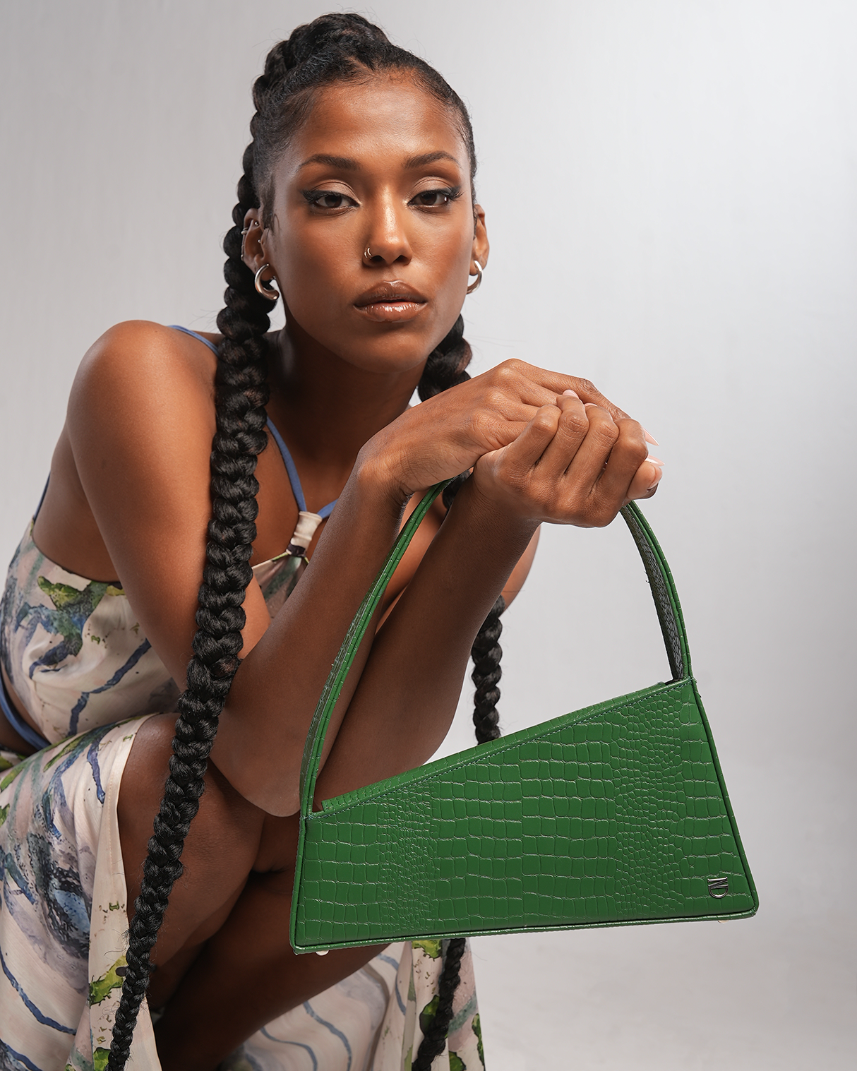 Meet our stunning Baguette Bag, named after the iconic Parisian tradition of casually tucking a baguette under your arm in the 90s. Crafted from genuine croc leather, available in classic black, chocolate brown, and a limited edition green, this shoulder bag is all about style and practicality. Whether you're heading to a fancy dinner or a casual outing with friends, this bag has you covered. Carry your essentials in style and make every day a special occasion with the Baguette Bag.