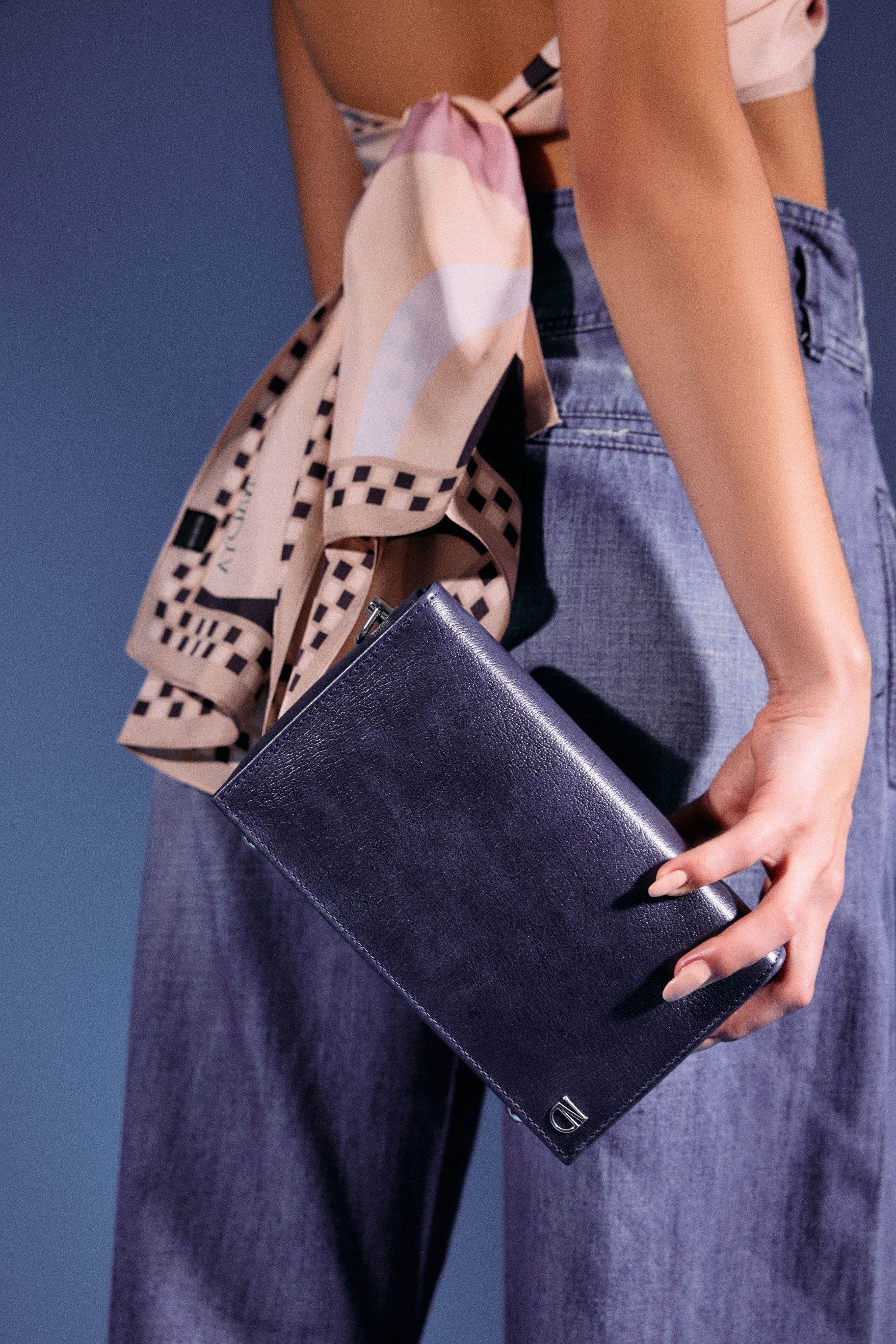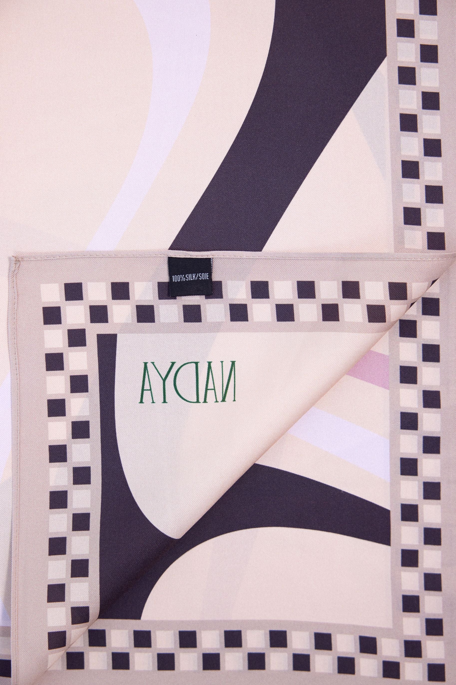 This multiway scarf is inspired by the 1970s fashion and disco culture, designed for all your day and night occasions. The checkered frames are our take on the reflective light disco ball featured on the ceilings of many discothèques, and the swirl pattern is created to give you movement and style.